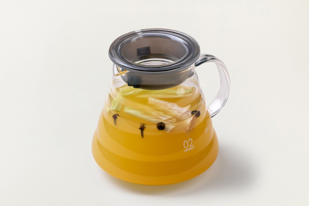 Натуральный чай, с кусочками лимона и имбиря. То что нужно, в зимнюю погоду.