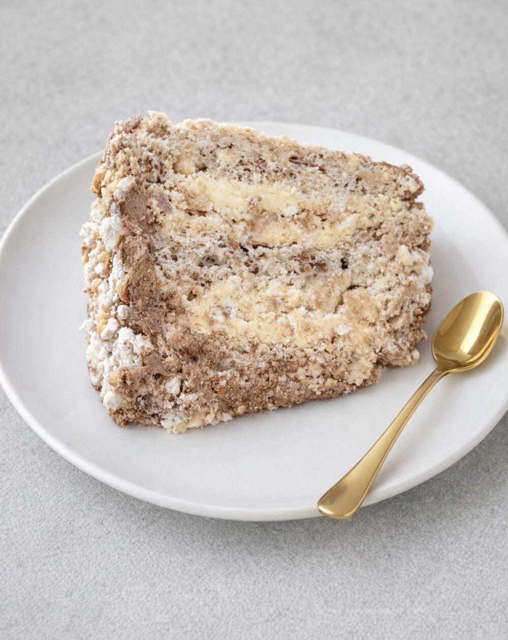Торт по советскому рецепту из белково-ореховых коржей, с прослойкой масляно-заварным кремом и крошками от коржей, с добавлением жаренного арахиса.