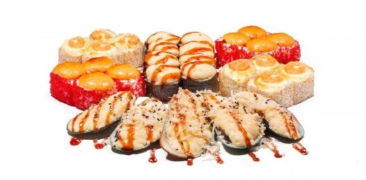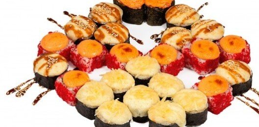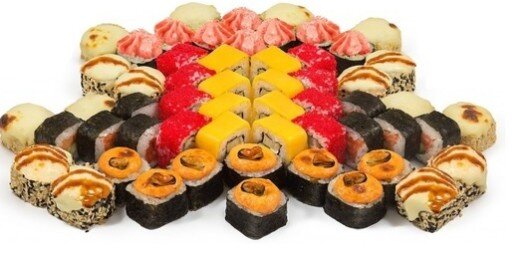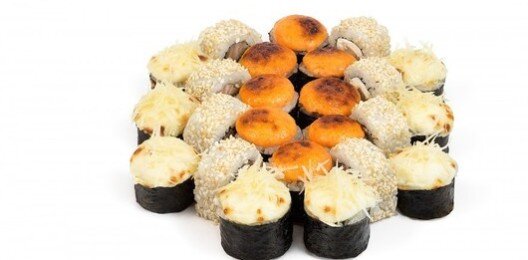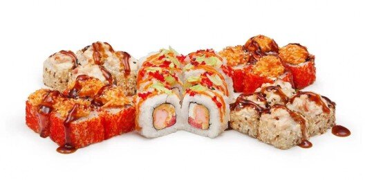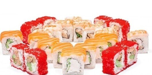 Состав: рис,нори,креветка тигровая,тамаго омлет, огурец, сливочный сыр, соус свит чили